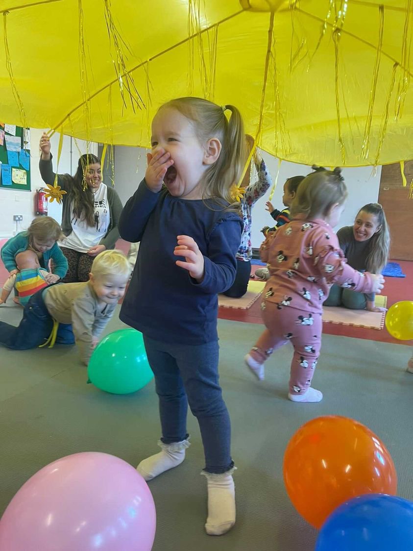 🌈 Material play — giant parachutes or stretchy fabric for group fun and giggles.